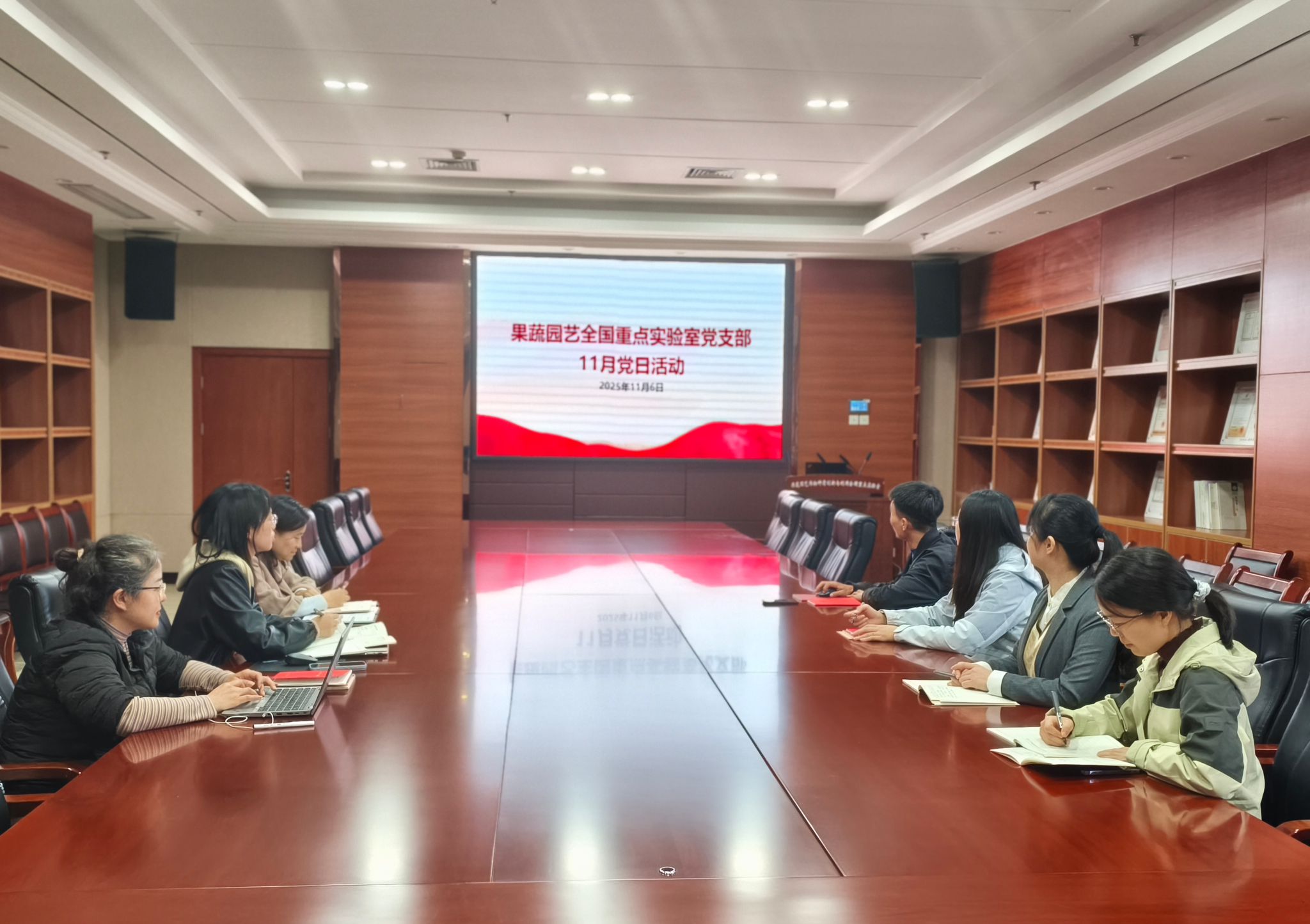 11月6日下午,果蔬园艺作物种质创新与利用全国重点实验室党支部在园林南楼206会议室召开11月主题党日活动。会议由苏晓阳同志领学,围绕党的二十届四中全会精神、《习近平谈治国理政》第五卷、习近平总书记给中国农业大学师生的重要回信精神,以及学校第二次党员集中大课内容开展专题学习和交流研讨。