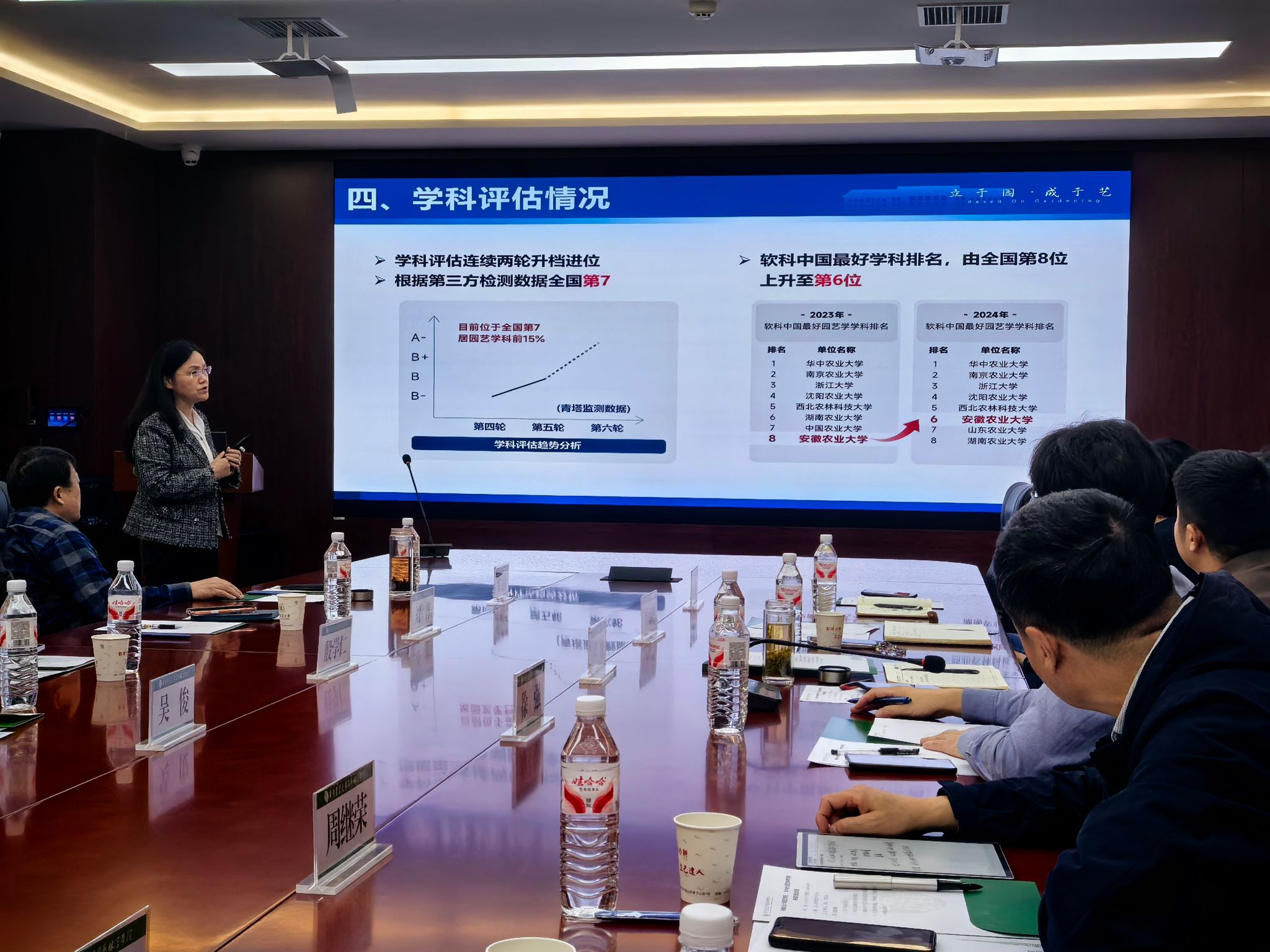 吴俊对学院的热情接待表示感谢。她表示,本次来访旨在推深做实安徽省政府与华中农业大学等5家单位组建的“1+5”农业科技创新联盟工作,加强园艺学科合作交流。随后,她从学院历史、基本情况、建设成效、发展规划四个方面简要汇报了园艺学院的发展历史与成绩。她希望在学科建设、科学研究、平台建设、人才培养等方面学习我院宝贵经验,并期待我院能持续向安徽农业大学输送优质人才。