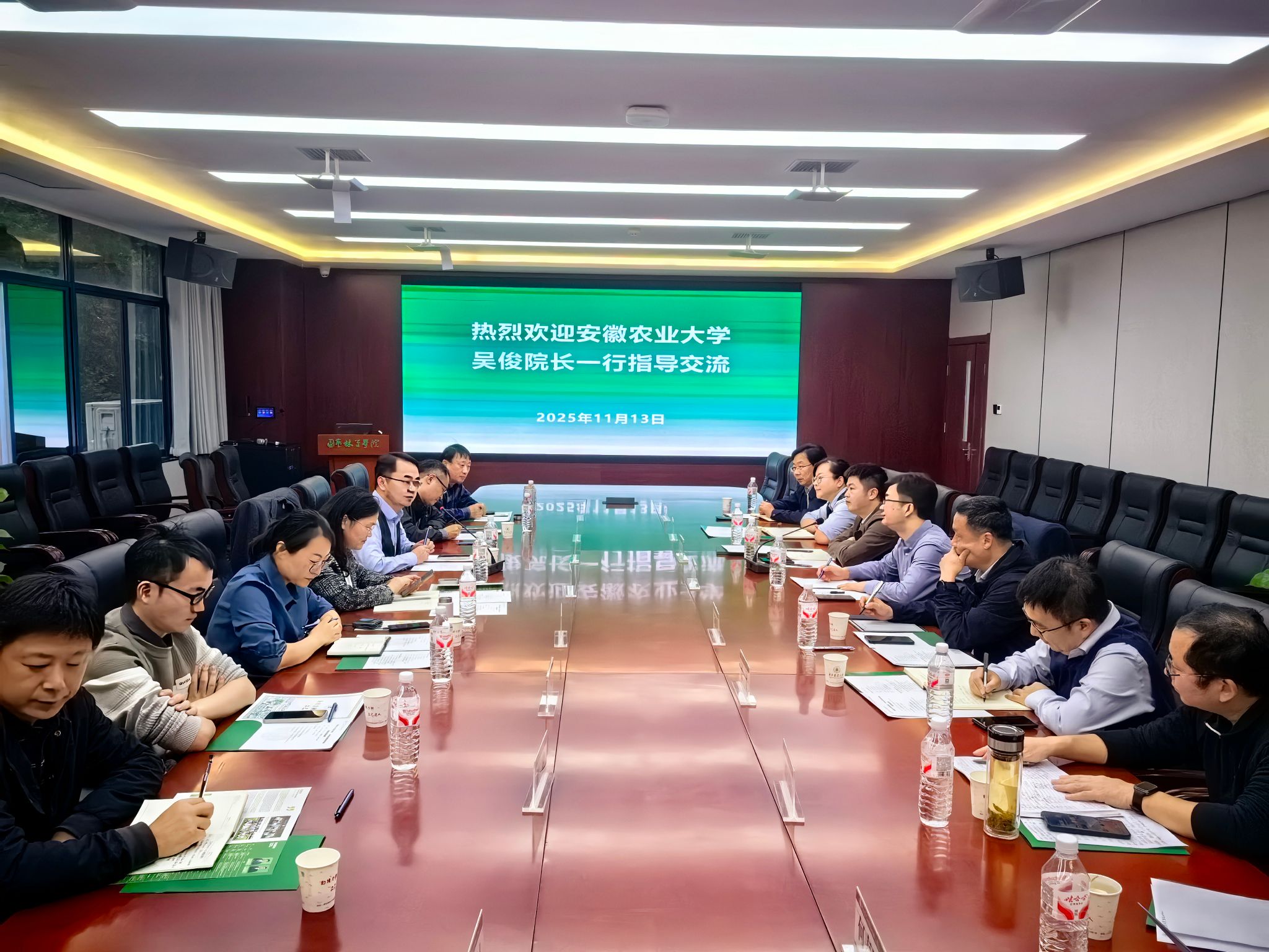 11月13日上午,安徽农业大学园艺学院学术院长吴俊教授带队来院调研。园艺林学学院党委书记龙健飞,实验室主任、园艺林学学院院长徐强教授热情地接待了吴俊一行并举行座谈交流。