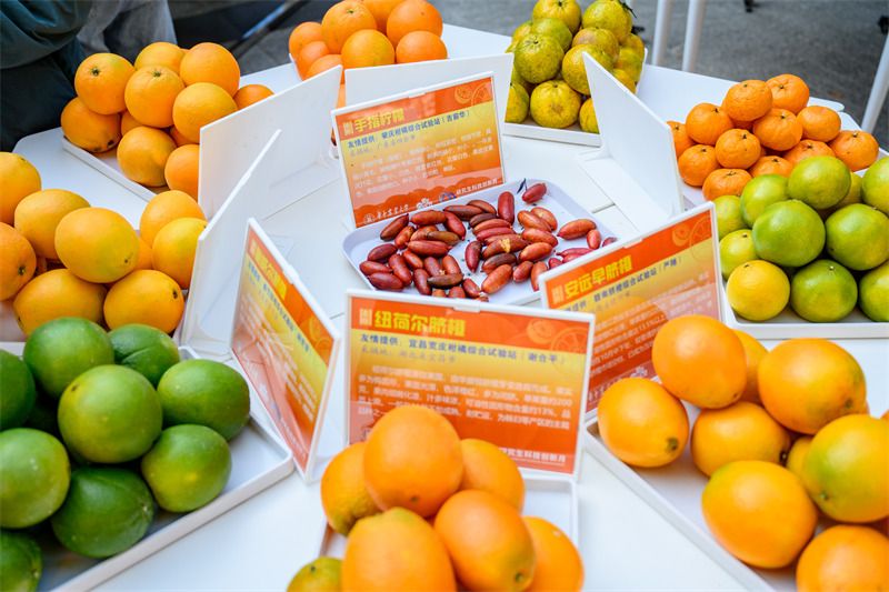 步入柑橘展示区,仿佛进入了一个微缩的中国柑橘王国。来自全国柑橘主产区的近120种柑橘品种,次第排开。蜜桔、冰糖橙、枸橼、㰀檬、枳、金柑……从占全国总产量58%的宽皮柑橘类,到甜润多汁的橙类,从清冽微苦的柚到清新提神的柠檬,让参观者驻足。大家不仅直观对比不同品种在果形、色泽、香气上的细微差别,更能通过介绍深入了解其生长习性、风味特点与产业价值。