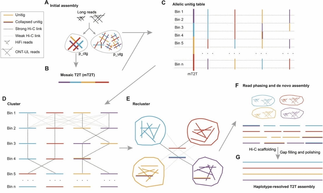 马铃薯是我国和世界第四大粮食作物,在全球近140个国家广泛种植,年产量约3.6亿吨。作为重要的能量和营养来源,马铃薯在缓解区域性粮食短缺、对抗贫困以及保障粮食安全方面发挥着不可替代的作用。现有马铃薯栽培种主要为同源四倍体(2n=4x=48),具有一定的多倍体优势。然而,其基因组结构复杂,包括四套高度相似的单倍型序列;且栽培马铃薯以块茎无性繁殖为主,单倍型之间积累了大量的等位变异。高度复杂的遗传背景使马铃薯育种长期落后于其他主要粮食作物。重建四套完整的单倍型序列对理解马铃薯基因组结构、基因功能挖掘和基因组辅助育种等研究至关重要。