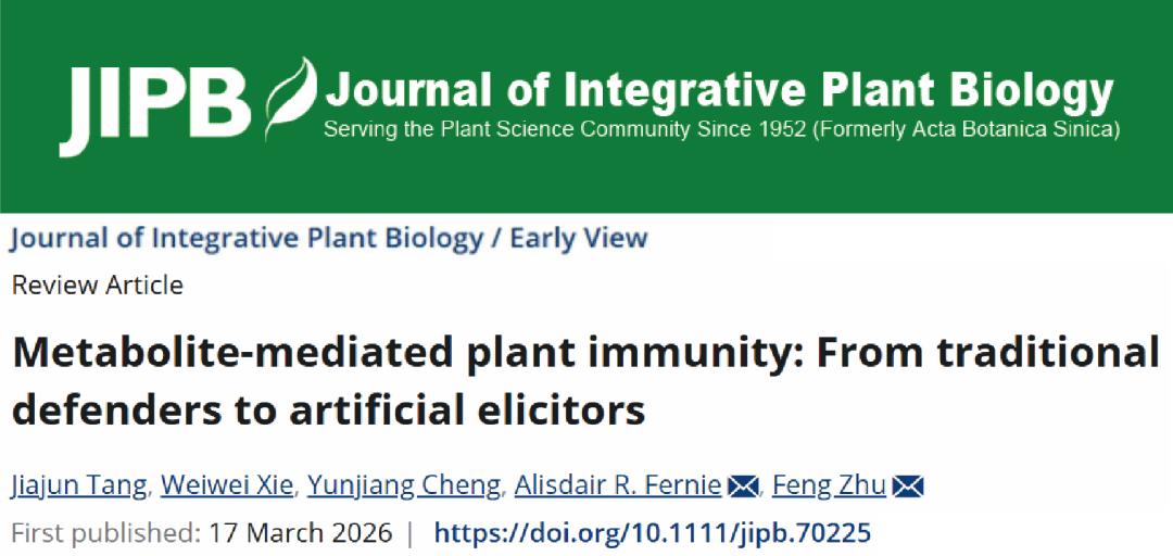 文章引用:Tang, J., Xie, W., Cheng, Y., Fernie, A., Zhu, F. (2026). Metabolite-mediated plant immunity: From traditional defenders to artificial elicitors. J. Integr. Plant Biol. https://doi.org/10.1111/jipb.70225