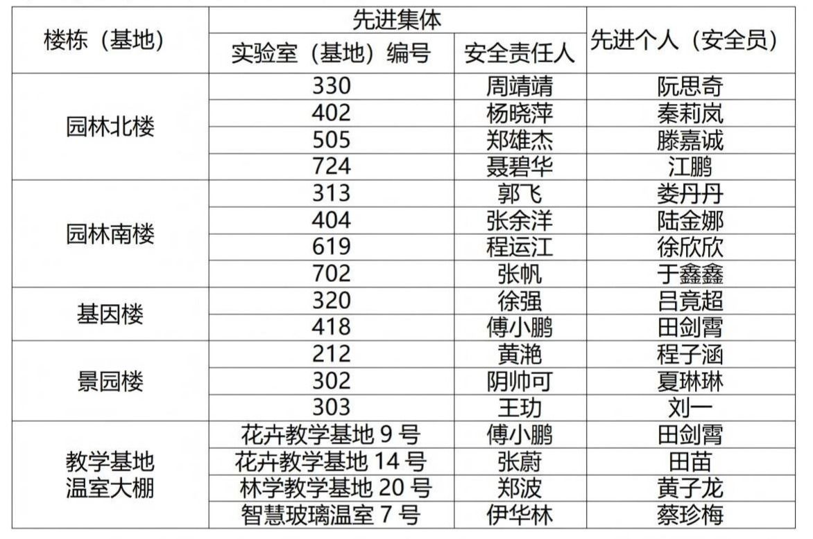 根据学院与实验室环境与安全有关管理办法,现将2025年度环境与安全先进集体与个人公示如下: