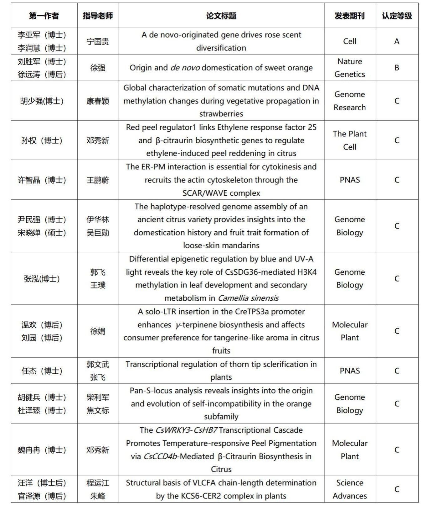 根据实验室认定期刊分类,将在C及以上期刊发表论文的研究生或博士后流动站科研人员评选为实验室学术之星,现将评选结果予以公示如下: